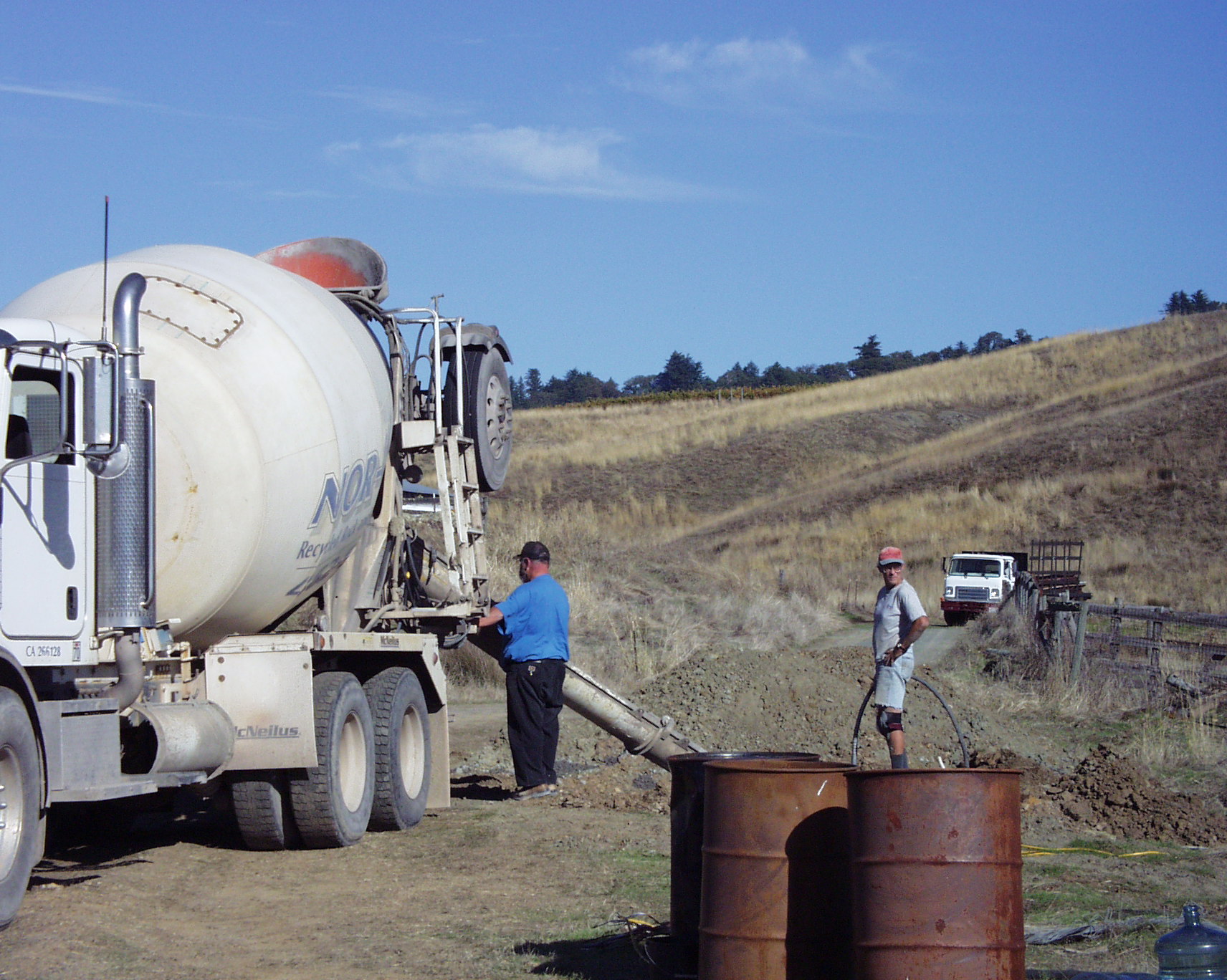 This was the 5th concrete transit truck, and the final pour which was the last of the four guy anchor holes. After consolidating the main foundation, consolidating the guy anchor holes, and smoothing the twin tower foundation top, I was tired.