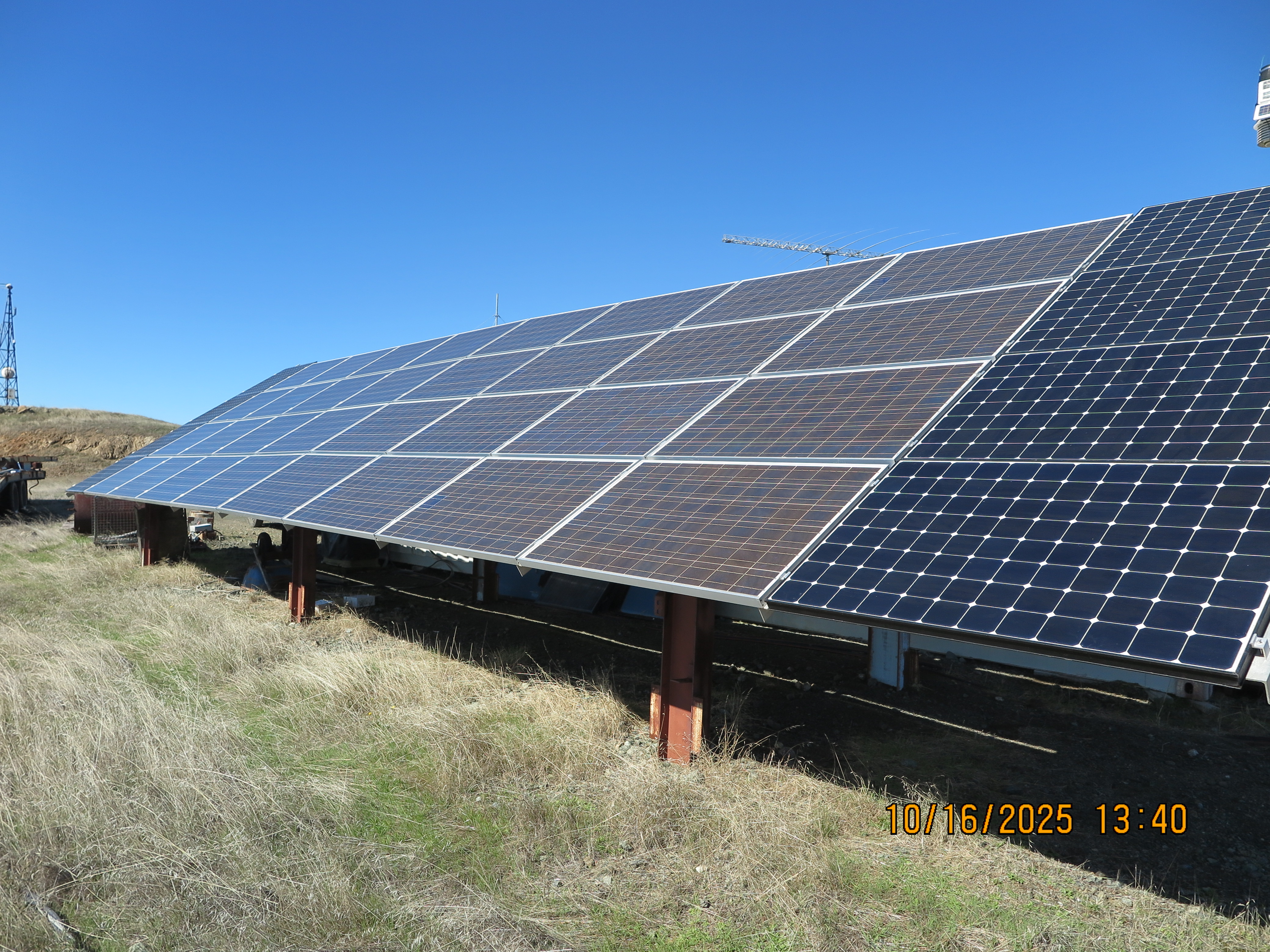 On 13 January 2023, I had a 101 MPH gust which I'm happy to say, the solar array survived. Many pepperwood trees around the mountain top didn't.